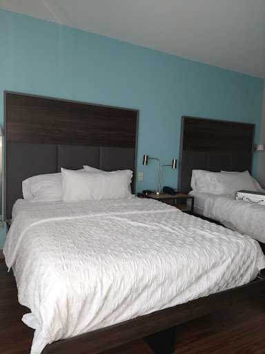 Read moreWe stayed here for three days while visiting family. The room was clean, but we were unpleasantly surprised to find:|-- No dressers or drawers of any kind. We're supposed to keep our clothes in the suitcase? Or on the tiny open shelf under the TV?|-- No closet! Just a pipe in the corner of the room with hangers. Weird. There were also large pegs on the wall for hanging jackets, etc. I guess that's fine but we really want a closet and a dresser so our clothes aren't just out in the open.|-- No in-room safe. We had to carry our valuables with us when we left the room.|-- No microwave in the room. They have a microwave in the lobby market area, which made it seem more like a gas station convenience store than a hotel.|-- The breakfast was extremely limited. They advertise a "hot" buffet breakfast, but the only hot items were a small try of sad scrambled eggs and another small tray of rubbery sausages. The orange juice was foamy coming out of the dispenser, and tasted like soap.|-- The soap, shampoo, and conditioner are in these weird bottles that you had to squeeze to dispense. That was very awkward (especially to use at the sink) and also difficult for me, as I have problems with hand pain anyway. And the scent was unpleasant. |-- The mattress was reasonably comfortable, but it was on a wood platform that make a loud creaking noise with the slightest movement.|-- No coffee maker in the room. They advertise 24/7 coffee and tea in the lobby, but that seemed to be true only in the morning.|-- There is a small fitness center. But it's located right next to the elevators and has an all-glass front. Anyone working out is basically in a fishbowl.|We will never stay at the Tru...