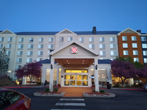 I can't believe anyone gives this property anything more than a 1 star review. Generally speaking, all Hilton properties have been on the decline for well over a decade. That continues. This place in particular is very bad. First, the employees speak very poor English. I could hardly understand the front desk person. Then they get testy because you have to say "excuse me?" continually. When you get to the rooms they remind you of the 1980's Motel 6's. Very little furniture. Very cheap, sparse, and with the furniture that's in there-it's cheap as well. Most decent places at last have a pen and some kind of paper on the desk for you to use-not this place. Almost all of the electrical outlets don't work. This last visit I've got a dog barking from down the hall at night and in the early morning. The TV is hit and miss. When it does work, the station content doesn't load. I can hear the conversation in the next room-all the time. This has been going on for a long time. Is there any insulation in the walls? Then last week, I hear a dog barking from down the hall. Not on this latest trip but on all the others where I've stayed more than one night-I always ask for housekeeping to do the room. I call down on day one to the front office where I'm told my room will be put on the list to clean. Not once-no exaggeration, has my room ever been done when I come back from work later that day. I call down to the front and am told the housekeeping staff has gone for the day but they can bring up towels. Great. The last time I was there the heater didn't work and there was no room to move me. So I just hunkered down for the night or two that I was there. One time over the winter, the heat didn't work (again) so then sent a repairman up to fix it. He did. He ended up bringing a new (refurbished) heater to install. He told me that they have been replacing a lot of heaters because they are old and are breaking down. You don't say! You won't see that happening at a Marriott! A few times back, I ordered food (cheeseburger) for dinner. Came up to the room raw-after an hour wait. They told me the cook was having a bad day and didn't get to work on time. Last summer I stayed on the side of the hotel where the outside fire pits are. The people were making so much noise that I called down to the front desk. It was after 10. I was told they would go out and tell the group to quiet down. I watched from my room. 25 minutes later, I called down to the front desk again because it was still loud, where I was told a manager had gone out to quiet the group down. No, nobody came out because I was watching. They told me they would send the manager out again. After 20 more minutes, still no manager showed up. I called the front and was told "well, the manger has asked them to be quiet, thats all we can do." The noise continued until about 11:30. No manager or any other employee came out to ask the group to quiet down. My last stay-smelled like dog urine in the room. Faint, but there. In the shower-there's 3 slots for shampoo, conditioners, and body wash. The only thing there was a shampoo, and it was pretty much empty. The other two slots were empty-no bottles in the slots at all. I've been in rooms where the lights may or may not work. Electrical outlet covers on the wall are chipped or broken. Ah, and hairs on the bathroom floor from previous patrons. Though this property is particularly poor, most all the Hiltons have become pretty trashy. I thought it might be just me, but I've had some of my counterpart also comment about the same issue and how Hilton has deteriorated over the years. All I can say is this: when we have group meetings my manager is a Marriott guy and always makes us stay there. The difference between a Marriott and Hilton property is night and day. Those properties are all taken care of. The employees are happy. Not so with the Hilton employees. One time in Colorado Springs I had to wait for 20 minutes for anyone to show up at the front desk. She had to take or pick up someone to the airport. That would never happen at a Marriott. I am a diamond/gold member at Hilton but will just be paying the extra price to stay at a better place. The points accrued aren't worth it. I've contacted the management at this property twice and have never gotten a return call....