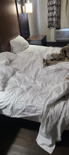 We went to the front desk furious. The night worker (a man with glasses) apologized and explained they couldnāt replace the mattress after all, but had reserved another room (159) for us. We were taken aback as we did not expect them to still accommodate us after the neglect the housekeeping/maintenance had shown 156. He issued new keys and we moved over. Room 159 was actually decent: intact door seal, clean floors, working outlets, and a normal mattress. The only issue was a dying cockroach in the corner, which I quickly dispatched (don't get it twisted; this was still unacceptable)