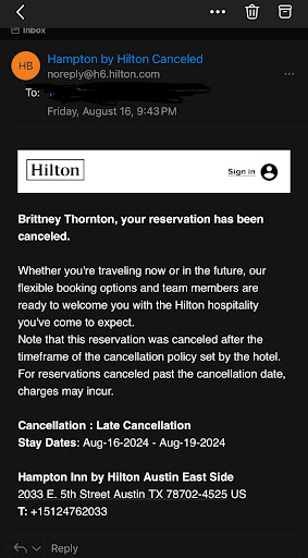 Read moreI recently stayed at this hotel (8/16/24 - 8/19/24) after driving over 14 hours, and the experience was a complete disaster from the start. Upon check-in, I was informed that my original reservation had been canceled by the staff in error during check-in, and to make matters worse, I was charged a $65 cancellation fee. The hotel staff told me there was nothing they could do on-site and that I would need to contact customer service. Eventually, they rebooked my room at a significantly higher rate than I originally reserved. After a 30-minute ordeal, they switched me to a Home2Suites at a discounted rate due to the confusion and inconvenience. Things only got worse when we finally made it to the room and were greeted by not one, but three roaches. I immediately called the front desk, and they moved us to the room next door. The rest of the stay went smoothly, but it hardly made up for the initial nightmare. Fast forward nearly two weeks later, I received an email from Guest Service Manager Kristen Johnson stating that the hotel staff, who she mentioned were new, had failed to charge me taxes during my stay. They requested a tax-exempt form, which had never been mentioned during my stay. I tried reaching out via phone and email to Kristen and another manager, Hector, but both completely ghosted me. Instead of resolving the matter, I was hit with an unauthorized $70 charge on my account (on the same day I reached out 8/28). In short the overall experience was terrible, unprofessional, frustrating, and unacceptable. While the staff is new they are unprofessional, unaccountable and lack the needed training to successfully do their job. Save yourself the headache and stay somewhere else I will never stay at this hotel again and strongly advise others to avoid it. The photos included are the cancellation email received at time of check-in done by staff that night, email communication with the manager and how they never responded, and the unauthorized charges...