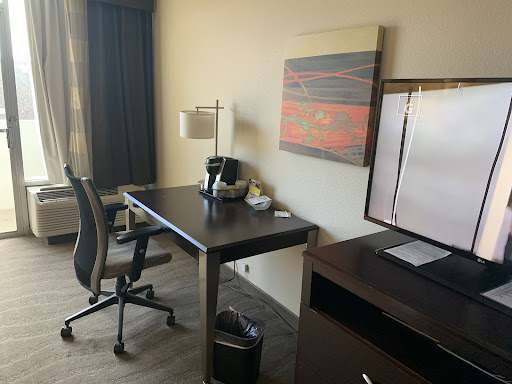 Read moreStayed here for a couple of days for a working vacation in June 2021. There was no free breakfast provided, which I assume was due to Covid, but the breakfast sandwich available behind the front desk was a $6 charge per day, which I think was ridiculous. Not sure if there is a separate way to book the room that includes the breakfast but if it does, that's all it came with, a sandwich and juice. The pool in the back of the hotel was very dirty and is surrounded by trees which explains all the shrubbery inside of it, only used it for a few minutes as I found a small area that was clean. There is no shuttle to the downtown destinations 5 miles away. Would be nice to have a shuttle that runs every few hours. Also, the free coffee is only out until 10am, and then put away. Would be nice to have coffee available longer than that. Also, the parking area could use a big fence protecting the perimeter, as it is wide open and connected to other lots. Anyone can really stroll onto the parking area if they wanted. Hotel overall looks nice from inside, what you would expect from a Holiday Inn. I liked the fact that it was relatively quiet, and you can get a room higher up that has a balcony and downtown view. There was no room service for the entire duration of the stay, due to Covid, and if we wanted anything, we would have to call it in or go downstairs and request it, like more towels, etc... I felt indifferent about that as I didn't mind not being bothered by housekeeping every morning. One other thing I did notice was a police car out front everyday parked near the front lobby area, no lights on, but just sitting there. It was a different car everyday I think. Not sure what it was doing there or it if was tending to some matters at the hotel, but I find it weird there was one there every single day of my stay, and I didn't bother to ask the hotel why. Overall, I would stay here again probably but may try find another option that offers a large free breakfast, at a comparable price and...