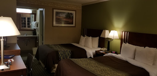 On a related note, seeing as I'm providing a review, the rooms were small, but we didn't care all that much, because we were just passing through. We arrived somewhat early, so we decided to hang out at the pool, because it was a beautiful day. Unfortunately, the pool looked like it hadn't been cleaned in a very long time. There were a lot of dead bugs, leaves, and a scummy film floating on top of the water, and dirt and a lot of dead leaves laying at the bottom of the pool. It didn't look like they had the pool running at all, as much of this gunk would have been picked up by the filter. Because of the pool's condition, we didn't bother swimming at all. Besides, a couple of guys showed up, cracked open a couple 12-packs of beer, and started smoking upwind from us. The loud music and wafting cigarette smoke sort of killed any desire for us to stay by the pool.