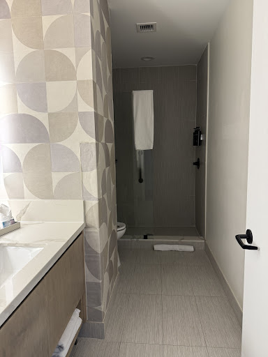 This hotel has been disappointing. The check in experience was great and I really appreciated Huntley's hospitality. The room is nice on the surface but seems to have been poorly constructed and designed: door between the living room and bedroom has been removed (the track it rolled on is still in place), luckily I was not planning on having that privacy but it would be bad for families/ etc who needed it while there is a dining room table, there isn't really a desk/ work space. I had to laptop into the nearest outlet in the kitchen and drape it over the countertop the window is disappointingly small for a hotel focused on views several doors were somehow out of alignment and needed extra help to close properly, including 1) wardrobe 2) kitchen cupboard 3) shower 4) and most importantly, the door to the room itself, which is a major safety concern in any building, especially since there didn't seem to be any restriction on elevator access to the different floors. Every single time I had to push/ pull the door closed behind me for it to latch/lock. There also seems to have been a failure to plan for the fact that doors would swing open because there were visible repairs and awkward braces/pads behind the bathroom and shower doors. the lighting was mostly good except for 1) the lack of a desk/ task lamp, 2) I never did figure out how to turn on the light above the couch and 3) the bedside lights were all-or-nothing, both sides, no dimmer, filling the whole room, but there were at least switches on both sides. the room included a kitchenette but there was no soap or detergent if you needed to clean dishes. the coffee maker kit was originally furnished with only (ambiguous labeled) decaf there was an ice bucket provided by no ice machine on the floor, I saw people asking to have their bucket filled at the restaurant/ bar the app indicated the lighting and climate could be controlled from my phone, which proved not to be true (tvs could be controlled that way, but there are also those remotes)