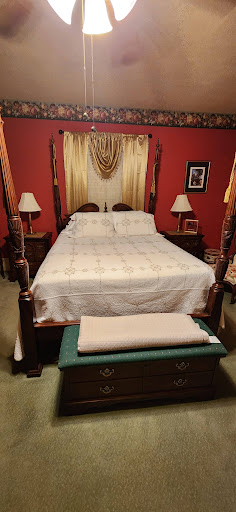 Read moreThis is an old, picturesque, two story home in town with columns on the front page, surrounded by pecan trees, and in a gentle state of decay, e.g., could use an outside paint job. We stayed in the "red" room downstairs with its private bath which cost about $150 a night. This was a large room, with a queen-size bed with high full mattresses, and decorated with safari items. Two small separated closets had been converted into the bathroom: one for the toilet and vanity and one for the shower. The shower was so cramped that we didn't use it and the toilet required 6 flushes to complete the job. There was no thermostat for the room so we had to shut the vents to stay warm. We were not given a room key or front door key. But the breakfast was truly excellent and the lady who both cooked and served, was a character, full of wit and good cheer. And the atmosphere around the large dining table seemed to promote good conversations between guests. This Bed and Breakfast has not been in operation long and it will hopefully improve in the future. In addition Bainbridge was severely damaged in a hurricane last year which probably affected the outside state...