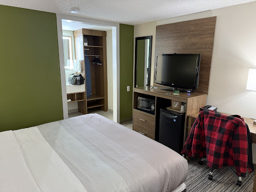 Ā Ā Ā Read moreWell considering the hotel was almost empty, we didnāt expect to be in the room right next to the hotelās laundry/boiler room. We didnāt realize thatās what it was until the next morning. Also the trucks are running all night 50 feet down from the room. Our tv stopped working in the last inning of the baseball finals between Toronto and Seattle and when we called the front desk, he came to check it out and then said, ya these tvās are old and actually canāt rent 2 rooms out because they donāt have working tvās. Well I guess you have a 3rd room now. There is light coming in the room between the door frame and the brick wall as well as the door needs weatherstripping. And the ac/heat units can be heard all night long from other rooms. Had to turn ours off because it was so loud, then had to listen to the other rooms units. There is a sign saying the room has been cleaned especially for usā¦well I donāt think so. There was dust on all the furniture, cobwebs hanging from the ceiling, which I actually walked into one as I went to the bathroom area, then a spider fell down from it. This will not be my āChoice Hotelā again, because there isnāt any āQualityā...