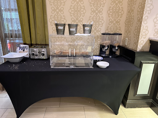 Food: A continental breakfast was available in the morning but we did not partake. I didn’t see the food so no comment. We DoorDashed to the lobby the night before and that went smoothly.