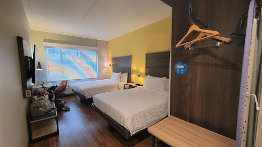 Overall, we enjoyed our stay and would come back.||ROOM|This hotel is newer and I've found that the Tru series by Hilton means you'll get a hard floor (no carpet) and a thoughtful but minimal approach to the room. I personally like this. The hard floor to me is much more sanitary than carpet. The thoughtful but minimal approach means there are not drawers and things or closets to unpack and the room is definitely "efficient" in size. However, there are hooks, built-in places for luggage to lay open and LOTS of power outlets and USB charging ports.||I found the bed to actually be pretty comfortable, I don't often find hotel beds to be comfortable. We were in a room with a king bed. The pillows of course, we the same "pancake pillows" as I like to call them, they flatten into nothing with the tiniest bit of weight, but I know that's every hotel these days. However, I had some bad heartburn one night and my spouse asked for 3 extra pillows. They brought them up to our room very quickly and that helped a LOT.||To me the clean and modern approach is very attractive. However, I think a family, especially one with small children may not find it so attractive due to the size of the room (not much space for hanging out) and the lack of liners on the trash cans. For us (a couple traveling together) we appreciate that servicing the room (collecting trash, making beds, refilling soap) only comes by every other day and the trash has no liners and has a separator for trash vs recycling since it seems more environment-aware than other hotels. And also adding to that the soap, shampoo, lotion, etc is in dispensers attached to the wall, so much less plastic and waste for one-time use products that don't fully get used.||Most importantly to me, as a hot person and hot sleeper the AC worked well in the room and would go as low as 64 and did a good job. It is loud, but I've never in all my years stayed at a hotel where it was quiet. Iwill note though, that the thermostat is one in which you cannot select heat vs AC, you only choose a temperature. For my spouse, the most important thing to him was a hot shower and that was satisfactory. Also, since it's a newer hotel it's a walk-in shower with glass door and plenty tall for us (max height 6'3").||BREAKFAST|I did eat the breakfast one morning. However, I get there so close to the end, that the attendant literally started closing up after I got my food (that's on me, but it was a shame). So that may explain why the only bananas and oranges that were left didn't look so enticing. I was able to grab the last little pre-made omelets. I'm pretty sure it was real egg and not eggbeaters, and was pretty good, it just had a few red and green peppers in it. There was also some sausage patties, I would assume probably some sausage links or bacon, but again I was too late so not sure. They had slices of bread and bagels that you could toast. With it they offered peanut butter, strawberry jelly and plain cream cheese. There was also cereal (I think three kinds) and for beverages you had 3 kinds of juices and water. Naturally, you also had coffee and tea since they have a 24 hour coffee/tea station available at all times. Last, but not least they had a neat little pancake device. You waive you hand and it dispenses some pancake batter on a thing, cooks it & delivers it to you awaiting plate in the appropriate spot. I didn't try to use it, but seemed like and efficient pancake option.||OTHER|The gym didn't look bad, but I didn't partake since it was vacay. But it was 24 hour and outside it had the ice maker for the hotel, buckets for ice, cups and a water dispenser you could use to fill up a bottle or one of the paper cups available there. This was nice and we used it to refill our water bottles during our stay. It's also conveniently located near the elevators on the first floor.||There is a little concession bar where you can buy items from the front desk person and it includes snacks, sodas, beer, wine and other food items. That's also where the microwave for the hotel is located. They even have a little freezer with some microwavable meals if you're in a tight. I like that the microwave was there by the front desk person, since I've seen them randomly be in the halls at other hotels and that made me concerned about it's cleanliness.||The lobby has various spaces to sit. Some more suited for dining, some more suited for tray table working environment. Others for socialization. And lastly there is a table shuffleboard device in the lobby. One evening in between events we hung out down there playing and having a couple drinks. They did have some children's board games but just looking at them it seemed like most of the pieces were missing or destroyed.||TRANSPORTATION & PARKING|The hotel does not have it's own parking, but there is a parking deck across the street. Right in front of the hotel they have designated pick up spots so it was easy to access rides like Uber & Lyft.||There are some areas close by that may not be the best for walking through at night, however it almost seemed like there was a different part of the city in every direction, so that was nice and during the day we walked most places. Particularly, the...