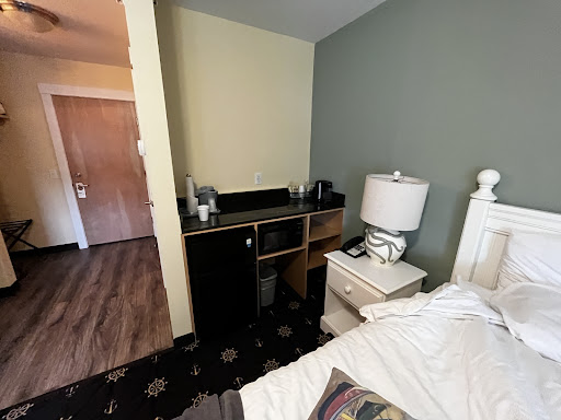 Cons: first I would say that the maid service was sub par. I did notice that if one maid was working then everything would be well handled and taken care of, otherwise something needs to change. We came in on a Sunday evening to a very clean room, we were good for Monday but then Tuesday we needed maid service. We put the sign on the door and while we were out hiking Acadia, the bed got made and towels restocked as well as trash being emptied. Wonderful, we thought. As we stayed through the week, we were accumulating a lot of garbage and recycling- to be expected. For the next three days we put our maid service sign out on the door and it did not get serviced even once. The third day I finally asked the front desk worker for fresh towels and trash bags so I could empty everything myself. She said she would notify maid services in the morning to clean our room. Under the sink was full of five trash bags! Nobody wants that on a vacation. Especially when you spend $2k for a weeks stay. Then on the fourth day we were out all morning and came back to the room in the late afternoon to find that a maid was emptying our trash and gave a stack of towels but nothing else was cleaned. He didn’t vacuum, wipe down tables/sink, etc. I should’ve walked down to the grocery store to get my own cleaning products had I known this. I didn’t say anything else because we were leaving the next day, but this is something that people should know prior to staying here to plan accordingly. Another con was the breakfast. First to note- if you want coffee that is actually hot, wait until 8am to get a cup because it is cold beforehand? I don’t know why breakfast started at 7am and the coffee would be out but 100% not even warm until 8am, but just to note. I was so disappointed because I am a breakfast lover and from past reviews we read that breakfast was amazing so I was very excited. Both my wife and I were pretty disappointed that they only offer two options for breakfast. One is an egg or vegan/veggie option and the other were pancakes/waffles/French toast. You really don’t get a full breakfast in our opinion. One day my wife got “home fries” that included 4 slices of a potato. And fruit that included one strawberry filleted. So if you are a very light eater for breakfast and okay with one option, you may enjoy it. Two of the breakfasts throughout the entire week were good. Otherwise it was just okay and left us hungry a few hours later. We ended up checking out other breakfast options in the area towards the end of the week.