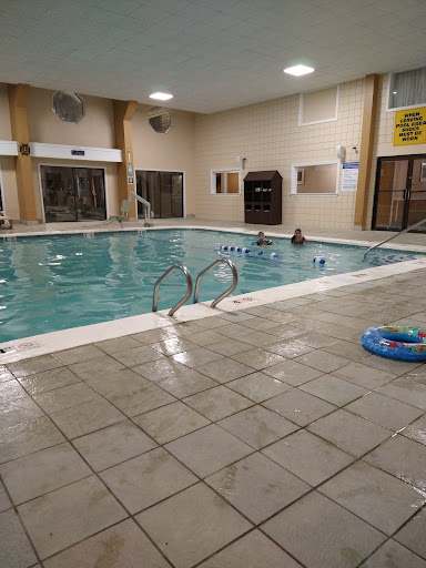 We were very disappointed in this hotel. We chose this hotel because it was listed as great for families. We wanted to find a place with a pool so the kids can play. First off we got there and went into the pool area realized the pool temperature felt kind of low so the adults did not go in the kids played a little bit. The bathrooms were absolutely horrendous! Water all over the floors mixed with wet torn up toilet paper and toilets full of you know what. I'm sure anyone with small children would understand how disgusting it would be to try to bring your child into a bathroom to use the facilities while in the pool area just to find that you have to carry them through an inch of water on the bathroom floor and then find a way to get the toilet to flush before cleaning the whole area to allow your child to go to the bathroom. As if that weren't bad enough we soon realized that all the cameras in the hallways for the most part were either facing the walls or broken and facing the floor. The entire third floor wreaked of marijuana. At a regular hotel without children there it wouldn't be that big of a deal but this place was listed as great for families. Then we find that most of the outside access doors that should require the key card we're all broken and able to be accessed by anybody. that made it impossible for me to sleep seeing as hell while we were in the pool area a cab showed up and dropped off three really shady looking guys that creepily walked around the building and went right through the side doors without pulling out a key card. All in all it was a horrible stay. I told the woman working behind the counter that night about the third floor wreaking of marijuana and creepy people standing outside of doors waiting to be let in and also told her about the cameras and nothing was done about it. So the next morning after speaking with another guest and realizing they noticed all the same issues I spoke with the morning lady at the front desk and she said she would notify someone about the issues. Long story short we will not be going back there and to bring children.