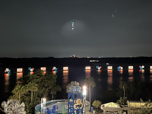 Photos I added show the fireworks & water parade. The pool and the tower that has the pool slide. Another photo has the end of the slide where...