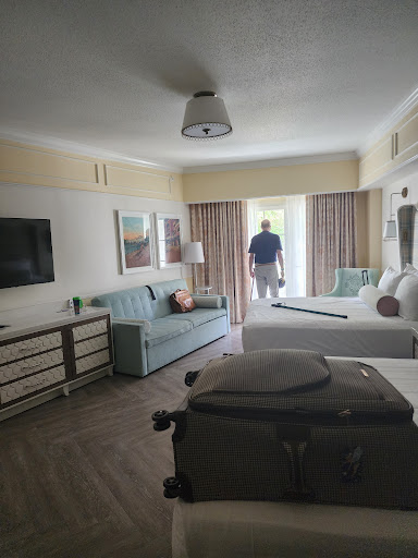 Read moreI must say I was a little disappointed with Disney’s Boardwalk villas. We are DVC members and have not stayed here before. It’s definitely spread out. Unless you utilize valet parking, you will have to park a good ways from the entrance. The elevator is at the main lobby and there are long hallways to the rooms ( unless you’re staying near the elevator) with stairs at the end of the hallway. We asked for an upper level near a “quiet” pool. We were placed on level five and had a view of the pool at Community Hall. The view was great! We were at the end of the hallway so it was either take five flights of stairs down or walk the halls back to the elevator, go down to level one and walk around to the pool. The pool at Community Hall was very nice and quiet! I did notice debris from the trees and such on a lot of the chairs and loungers. We went to the feature pool (Luna Park Pool) which boasts a water slide and a carnival themed area to get alcoholic and nonalcoholic beverages. As soon as I sat down, the seat of the lounge chair sank in. I looked and it was coming apart where it was attached to the frame. There were no other chairs available so I prayed I wouldn’t fall through. As I looked up under the umbrella covering me I noticed it was covered in mildew. I thought about how much money is spent there and that they could do a better job. Be aware if you buy the refillable cups. There is only one refill station and it is out on the boardwalk at the deli. The feature pool beverage bar will give you a refill if you have your cup with you but will put it in a plastic cup for you to pour into your refillable cup. Which, by the way, did not fill it all the way up. There is no refill station or beverage bar at Community Hall pool. There is however a soda machine where you can buy drinks. We stayed in a one room villa that was very nice with the exception of the refrigerator. It was very small and you could not put anything tall on the shelves. A 20 oz soda would not stand up. The kitchen had minimal supplies but you only had to ask and what you needed was brought very quickly by a smiling employee. There is one transportation station outside the lobby. There is also water transportation to limited areas. The Skyliner is near Epcot, which is a little hike, but doable. The food available was good and averaged...
