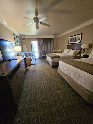 Read moreI was impressed. Reading some of the reviews had me worried. We love to be fully emerged in Disney when we are there. That’s the whole point right? This was not a fully emerged experience BUT it was a good experience non the less. Let’s start with how it feels like you are traveling back to the late 90’s- early 2000’s. Some people don’t like this. We loved it. Our family is not one to jump to modern styles. We like older vibes. This hotel would be considered outdated to most people now days. I would agree with that statement if I was that type of person. There are some things that need to be refurbished though but it was not a deal breaker for us. We had a ceiling fan in our room and that thing WORKED! It was great. Cast members were very friendly. Didn’t find a rude person. Grounds were kept nice at all times and are lovely. VERY QUIET resort. Seriously. We felt like party animals talking in a regular voice level lol. We barely heard anyone unless we walked past their rooms and were not talking. You won’t go hungry here. Those working at the restaurants are working hard so be nice. They are there for hours working to keep us fed and they smile while doing it. The food options are closed by 11. So if you k onto will be back after that eat before you go back to your room. The lobby was COLD which was also lovely. The ONLY thing I would say needs work is the transportation. Having to go to the TTC to get the monorail to MK and Epcot makes you have to leave your room earlier and you waste time on getting to the parks. Then you have one bus for Hollywood studio and Animal Kingdom. This means you are on the bus traveling to two parks depending on which park the driver goes to first. This is a waste of time for people who are on a time crunch as most are when at Disney. This is not a deal breaker overall since the price to stay here was extremely affordable. The affordability of the room is why we chose to stay this trip. We were short on funds and were meeting family. If we did not have this option we would not have been able to attend our family gathering. The money saved was worth the time lost in transportation at the end of the day. BUT if it can be worked out better it would be a great deal easier for guests. They have an exchange and an ITT office for veterans and military to obtain park tickets. The parking garage was NICE. It’s attached to the hotel. If you park on the fourth level and enter the building from that level you will be on the fourth floor of the hotel. Elevator to parking garage makes life easy especially if you have disabilities. The rooms are SPACIOUS! The hotel as a whole is disability friendly. This is amazing for our disabled veterans and active service members. We would stay again. There was nothing to keep us...