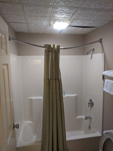Read moreThere are definitely some pros and cons at this hotel. some aspects of the room are okay It has a nice size fridge and a microwave and an okay size TV but not big. My room was on the ground floor and had a door to the outside parking lot where vehicles were parked directly in front so that certainly added a bunch of noise. The drapes facing the outside and the parking lot or difficult to close well enough to close out the light to keep it dark in the room to sleep.