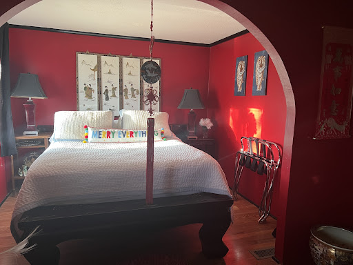 We stayed for one night at this B&B. It is one of the few choices available outside the park but it is quite a distance from the park entrance ~45 mins. We booked it as we were going to head back to Vegas so didn’t mind it being out of the way but the weather made it farther than it was due to slow driving conditions . The closest and quite a small town of Bixby is around 40 mins away and has some basic amenities but nothing big so plan accordingly. This place is in middle of nowhere so try and get there before it gets dark. Our stay was ok. The hospitality is great, we got upgraded to the Asian suite which was nice but it had different amenities than the standard room which we had originally booked. Jennifer and Nigel were great both during our stay and before when we called to ask about few things. We were able to use the full kitchen to heat/ prep our dinner which we were advised to get with us or have it in Bixby before getting there. We got there on a relatively colder and wet day so did not spend a lot of time outdoors but that is an option. It is very serene and quiet and the peacocks on the property are a delight. The reasons for a 4 star rating are few oddities which kind of are expected but still maybe would help another traveler decide. The mattress in our room was way too soft- if one person was on the bed the other person will roll towards them because of how soft it was. There were hair on our duvet which was little eww- and also dust in the room. The bed and bedsheets were clean so I just shook the duvet and ignored it. The main area had a smell like a cat’s litter and it was not great when the windows were closed due to the cold. I think they sprayed some room freshener after a bit but it was little off putting. There was a cat on the property which I don’t mind and it was outside when we came. When we went to heat our dinner it was inside and jumped twice on the kitchen shelves and island while we were prepping our food- again not an issue as we were able to shoo it down but can be an issue if you are allergic and/ or mind cats being so close to your food. Breakfast in the morning was ok- simple home cooked meal which we appreciated. Lot of great tips on how to plan our day from Nigel which was helpful. Overall if we were staying more than a night we would have not chosen to stay here but for one...