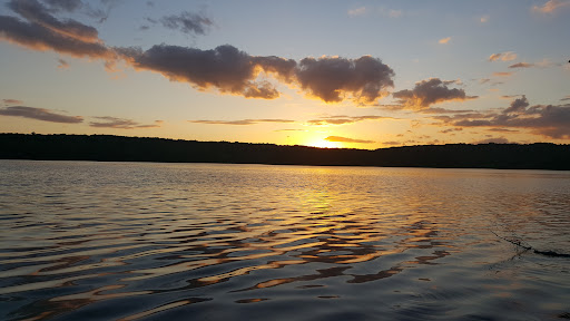 Read moreWe stayed at a deluxe dog friendly cabin with internal bathroom(walk in shower) and two bedrooms. One bedroom has a full size bed, the other has two sets of bunk beds with twin mattresses. There is enough space in the main room to squeeze in an inflatable queen. There is a couch and a cushioned chair, a small microwave, a 4 burner electric stove/oven, a full size fridge freezer, a ceiling fan in the main room. The porch will fit a few chairs in the rain. It's an easy walk to the lake edge but there isn't a beach. The cabins are across the lake from the marina, pool, picnic grounds, boat rental. We brought our tandem kayak and launched near the cabins and locked it up to a tree on the trail below cabin 3. There is an outdoor picnic table, fire pit and park stand-style Bbq. Both the BBQ and fire pit have adjustible cast iron grilling grates. The cabin DOES NOT HAVE A FIRE PLACE OR POT BELLY STOVE but there is electric baseboard heating and water heater. It's twenty minutes to Walmart, Giant, TJMaxx, Harbor Freight in Quakertown. There is a beverage store up the road beyond the spillway and a small grocery and icecream place on the Eastern side of the lake. We have LTE cell phone service at the cabin through Sprint. Haven't made a call but we were able to check the cat cam back home, instagram, news and...