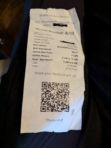 Reserved two rooms for a short trip to the Bay area to help a relative move. Both rooms were proof of you get what you pay for. While we were checking in, we heard another guest telling the front desk of all the issues in the suite they were in (the room wasn't clean and things weren't working). First, I'll give credit for free parking and free wifi. The rooms are quite sparse. Paid extra upon arrival to make sure one room had a mini fridge. That room also came with urine spots on the toilet seat. The non-mini fridge room had baseboards covered in black dust and bits of trash on the floor to keep the dead bugs company. Called the front desk to ask for someone to clean the floor but it was after 8pm and no one was available. Called again the next day and was told that housekeeping cleans rooms every four days but they did send someone to clean the floor in response to my call. On the fourth day, "cleaning" consisted only of emptying the trash and replacing the towels; bed was left unmade, bathroom did not appear to have even been wiped down. The AC unit was falling apart but actually still worked to keep the room at a comfortable temperature so that was a nice surprise. We heard every door opening and slamming shut, as well as conversations outside the window so if you're looking for quiet, you won't really find it here. This motel cut every corner they could: no "Do Not Disturb" door hanger (we asked for one and was told they don't have them), no box of facial tissue, very small sink with no drain stopper, no bag for dirty laundry, shower curtain barely spanned the shower, no privacy for the windows that were facing the parking lot (if you open the curtain, there was no sheer panel or reflective film so anyone going to their car can easily and clearly see into the room), smallest bars of soap I've ever encountered in a hotel, no blow dryer, and no complimentary shampoo/conditioner. Not an issue for us on this trip but also no iron or ironing board. We were glad that we brought a charging cord for our cell phones that plugs into the wall as there were no USB port charging options that we've come to expect based on other experiences. We booked this motel solely based on price and location. Lesson learned. I understand that Motel 6 is a budget chain but my experience is that there are some things that should just be a given...like a clean room. We won't be staying here again. In the future, we will gladly pay more for a better place to stay, even if it's a little...