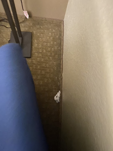 Upon entering my room initially I found what appeared to be a snotty napkin that an employee came to retrieve and dirty carpets. As I was inspecting the room further (we had been there a couple hours) I found molded/red splatter stained curtains, one of the slide bars for the inner block out drapes was broken, dusty microwave (like it had not been cleaned) and hair in the shower to name a few