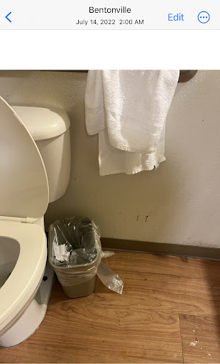 Read moreI paid BEFORE I realized what I would be dealing with. This place is disgusting. They say if you pay for a week you get housekeeping once a week. I was there three weeks, couldn't get a refund, and my housekeeping, consisted of me complaining once a week to the front desk and begging for the house cleaning card to change my own sheets, clean my own toilets and take out my own trash, vacuum my own room. How bad does it have to be when you are willing to clean your own room and have to fight to get chemicals to do so because this particular hotel won't make people do their jobs? I just want clean sheets and a clean toilet and a clean floor to walk on. I'd like something to scrub the bathtub and Kyle, the night clerk here at Bentonville, refused to even contact management or give us corporate information. Not only should you NOT stay here unless it's an EXTREME Situation, I'd also recommend that this company actually HIRE some house cleaners, train them properly and if someone wants clean towels, clean sheets and a clean environment and YOUR Employees are not willing to provide that and you refuse to allow the guest to clean their environment Expect TONS of Horrible reviews like this one. Human's aren't pigs, don't expect them to stay or sleep in nasty places. I've included TONS of photo's, from the elevator, to the stairwell, to the room itself. When you as a guest can't get a refund to go to a better hotel and your staff, like night-shift Kyle, refuses to help in any way to get a guest clean towels or sheets or even trash-bags to you as a guest can clean your own room you don't belong in the hospitality business. Your staff is absolutely horrid and this location should be closed down by a health inspector. WORST Stay EVER! If this is how Home Towne Suites shows their standards, they deserve an F, No Effort and Not a hint of even caring. This place is gross and I feel filthy for having stayed. It's a mistake I'll NEVER make again. I need to bathe in clorox after this visit, wonder what kind of diseases are just lurking around on the filthy sheets at this point. Stayed December-January for the Holiday of 2016-2017. If you can't keep your guests in clean rooms, at the least offer them the ability to do your job and clean it themselves. After 5 days of no clean towels and no clean sheets, and no clean toilet and trash piling up since the last time I cleaned the room myself I have had it. Hopefully this review will help others decide on a humane place to stay with properly cleaned units. Signed Disgusted in...