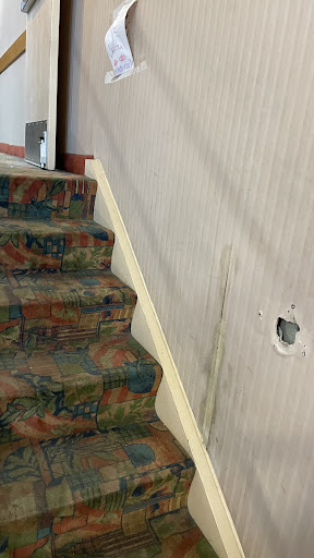 After we checked in and headed for our room, the filth continued. The carpet in the hallways looked like it hadn't been vacuumed in years. The edges of the red carpet were white from the thick layer of dust and dirt.