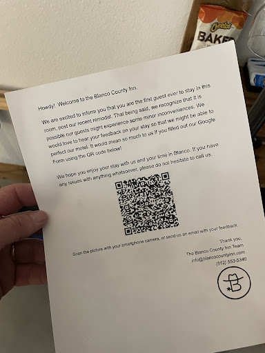 Don't do it! I've been staying at Blanco County Inn for 16 years, an average of 4 times a year, and this is my first time since new management took over in summer 2022. And it will be my last. They want your money, not your business. ||||There is literally no one to speak to about anything - not to reserve a room (you have to go to a website), and not to get service for anything (you have to send an email). My TV wasn't working right, and WIFI wasn't working. Sent an email. Got an apologetic email response saying that it was first priority the next (Saturday) morning. Just before noon on Saturday, another email: Sorry, it won't be fixed til Monday. I emailed back: Did you come take a look at it? No response. A few hours later, I emailed again: Please call my cell number. No response. ||||The room's shelves (with supposedly clean dishes) were dirty. No microwave in the room. No waters in the fridge. The ice machine on site was turned off. The nice outside marquee sign is no longer lit at night. The new owners don't want to inconvenience themselves with customers showing up and making them work.||||When I requested a refund for the stay, another apologetic email, with no acknowledgement of a refund request. During all of this: Not a single phone call from anyone. They're hiding behind an email box, with no concern for the customer. And now, sadly, I no longer have concern for the Blanco County Inn. What a...