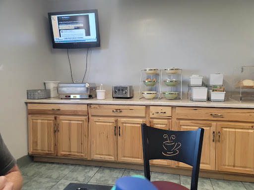 Breakfast was Frosted Flakes with UHT chocolate milk and Eggo waffles stored at room temperature. I would have preferred a slightly lower room rate and no breakfast. I left hungry and stopped at Maverik for a burrito.