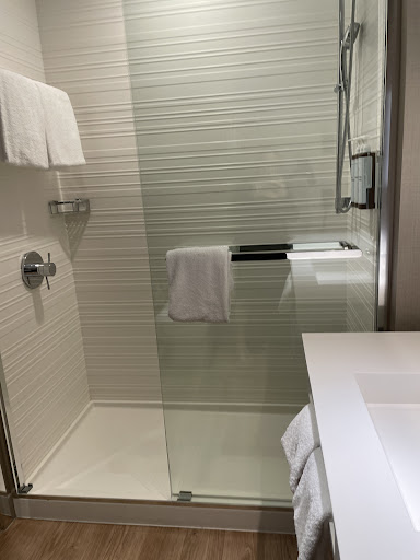 Read moreThis hotel's location can not be beat! Quick drive off interstate, ample parking in covered garage, easy access directly across the street from MOA and the light rail station to Airport and downtown Mnpls. Rooms are very clean and modern with comfortable beds, large tv, and an easy chair. Tons of lighting and counter space. The walk-in shower with overhead rain shower head was a welcoming bonus. However, with that said... I was traveling with a friend and we detected that the barn style bathroom door did not seal for bathroom privacy. While standing in the bed area of the room, one could EASILY see directly into the shower stall. How uncomfortable is that?? In addition, the water saving toilet did not flush properly. Gross. The bathroom issues were both irritating and embarrassing when traveling with another person. The lobby and lounge area is large, open and airy. Truly enjoyed the big screen tv in the lounge watching football. Server was friendly and kept checking on us. Kitchen staff provided far below average food. Steak was cold, over-cooked leather and the burger was cold and RAW. And I mean the cow was still mooing raw. Steak dinner was returned and server offered to prepare another but it was getting late so instead he took item off from our bill. We decided to eat the remainder of our meals the next day at a different, near-by hotel. Lovely spa area where you can fill a little pouch of fragrant lavender for your personal use, nice touch. Check-in and the check-out were smooth and flawless. This location would be great for business, layover, MOA, professional sporting events, shopping. Would not suggest for families or children, as there was no pool or youth friendly areas...