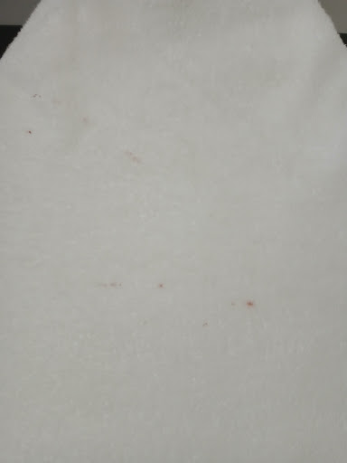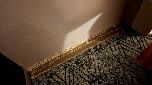 So 30 minutes later we get to the room. It smells like mold/mildew. The carpet is ripped and aged and smells. The walls are smattered with unknown fluids and stains (Nail polish? Ketchup? Blood? Who knows). The mattress seemed old and worn down in the places to the point you could tell where people normally lay. The shower level is stuck at a spot where 75% of water flows out the top and 25% flows out the bottom. And there were obvious signs of water damage and aging everywhere. I had to clean an insect out of the shower before use. Also several hairs were on the walls in the shower.