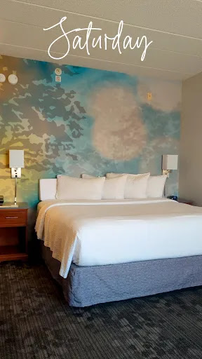 Read moreThis was the hotel my coworker chose for us and while I could have stayed at a nicer place downtown, I’ve always had good experiences on Marriott’s and I use work trips to earn Bonvoy points so it’s usually worth it. However, the check in was super sterile and impersonal. They didn’t bother to tell me that my room included a free breakfast, or even the times breakfast and other meals were offered. So I bought breakfast from the little hotel store (power bar) all 4 mornings of my stay, and don’t learn that I should have gotten breakfast until I checked out Friday, 5 minutes after breakfast had ended. I also checked my room for information on the restaurant but there was none.