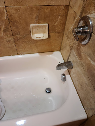 The poolside room felt safer, but it was filled with the same odor. The state of the bathroom was identical to the first room, with mold growing along every crevice and seam. The water to the room whether from the sink or shower would not get hot even after running for 10+ minutes. Had I not dipped in the hot tub, I would not have even attempted to shower given the mold. I was not comfortable running the air either, as the venting appeared visibly blackened, whether by dirt or by mold.