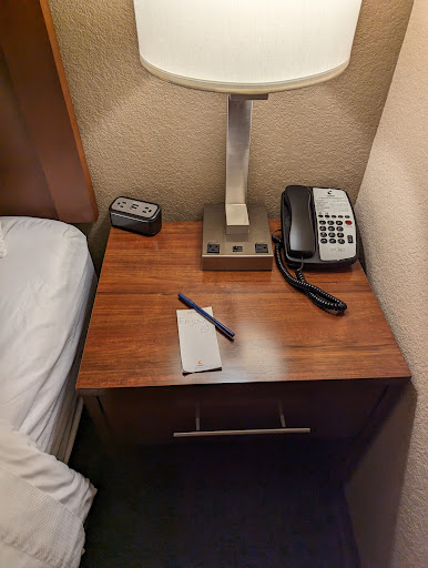 We checked in late one night in the middle of the week after a long day of traveling. We were tired from traveling and just wanted a clean bed for a night. We had some pretty bad luck at one of the other local motels and decided this place was worth the extra money. We tried calling first to make a reservation and the night shift didn't answer. We pulled up to the front doors and they were locked (security is run tight). After a few minutes of waiting the front desk night clerk called us back, and was very apologetic for missing our call. Without delay he got us into a king bed suite for a reasonable price. The room was clean and well sanitized. The king size bed was comfortable and we liked the fact they had so many extra pillows. When we woke up in the morning we checked out the breakfast and were pleasantly surprised that the selection included hot food like scrambled eggs, waffles, sausage and bacon. There were pastries and a large selection of bread to make sandwiches with. They had several drink options from coffee, tea, juices and water. Overall the breakfast was a highlight for us since we travel across the country and stay at several hotels that advertise free breakfast and then one of two things happen 1) their selection is all packaged food or 2) they just don't have breakfast at all.