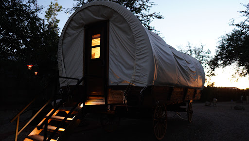 On site they also have a old western Wagon cabin for rent with modern conveniences. It’s great for a couple or family as it has a bunk bed.