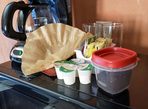 Bluff is a tiny hamlet (population 240) stretched along U.S. Route 191 in the southeast corner of Utah. It's roughly equidistant from Moab, UT, Canyon de Chelly, AZ, Mesa Verde, CO, and Page, AZ, which makes it a convenient, if not the only, spot to spend the night. Unfortunately, the lodging options in Bluff are few and rather dismal. There's an unreasonably expensive "Resort & Spa" nearby; the rest is a handful of 1-star or unrated hotels and motels. Arriving late, I didn't expect a red carpet, but I was at least hoping to find a receptionist on the premises - no such luck. After trying to call the hotel (straight to voicemail) and much searching in almost complete darkness, I found a short note and a key to my room pinned to the front door. The room was straight out of a horror movie: filthy, dingy, and dark. I couldn't discern what the floors were made of - was it linoleum, plywood, or dirt? There was trash, dust, and debris everywhere; you couldn't make one step without hearing something crunch underfoot. The worst place was the bathroom (see the photos), with a filthy bathtub, minimal toiletries, and soiled towels. Bed linens were threadbare and gray; no blanket was provided. The night was rather cold (about 50° F), but the noisy HVAC system high above the patio door didn't make the room any warmer - I had to put on every piece of clothing I had. A coffee machine did work, but only one paper filter was provided along with a tiny amount of ground coffee of unknown brand and origin. Was it even coffee? After a dreadful night, I couldn't tell. The only redeeming quality of this hotel is its location: it's quiet, and there's a nice view of the rocks from the backyard. I didn't chance a breakfast on premises and was happy to leave the place behind me. Absolute disaster,...