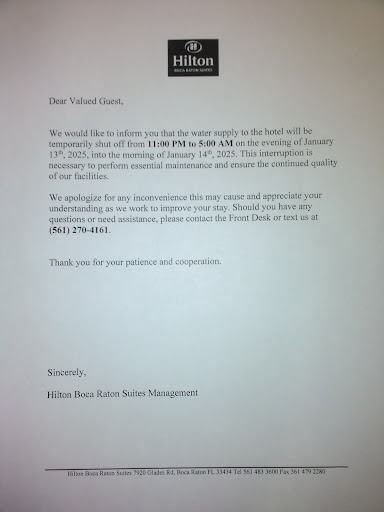 THEY TOOK MY $953.13 (Wells Fargo) then tried to say I was canceled. No Mr. PATEL on his own accord, canceled a lifeling HILTON Customer. He can answer the Judge as after talking to my Step brother and friend ( Two Attorneys), Tomorrow Hilton Corporation, Namely manger PATEL will find a sheriff's summons to explain this clesr Violation of State and Federal laws according to the United States Constitution. I would understand if I did something so bad? But to take $1000 from me, and Delete my Reservation entirely???Well. We will let the JUDGE DECIDE. :) AVOID THIS RACIST AND ANTI CHRISTIAN ANTI JEWISH ✡️ PLACE!!I Iam NOT taking this RIP - OFF Hotel business Lighty. Iam a Private Military Contractor when not all into Healthcare. I have never felt so hated on. Maybe my huge American Flag 🇺🇸 in my car window and hats... is the reason. Perhaps its political . The Judge will find out. Ill be the First to arrive and last to leave. As a student, in school now as we speak, with my endgoal to be an attorney at law , I do find this funny. Its almost like Mr. PATEL wants a Lawsuit, and just gave me a perfect one. My 2 attorneys said its very clear. HILTON, wants my business. Iam at another location as we speak. BOCA RATON SUITES HILTON, has a man named Manager PATEL who does NOT WANT ME THERE. From day One, Mr. PATEL HAS HAD A CERTIAN DEMEANOR. I can feel when someone judges you. NOW, AFTER THIS CRIMINAL ACTION, A REAL JUDGE WILL RULE...