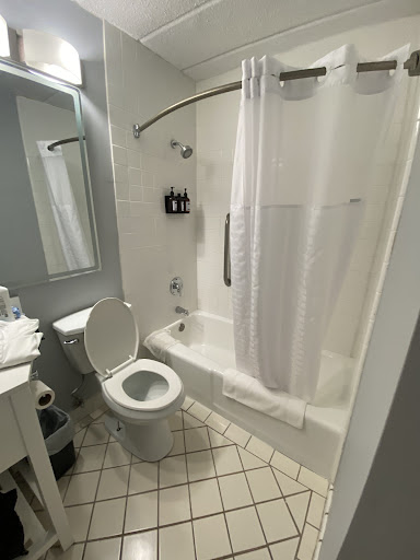 In the bathroom, they had a nice new sink and mirror, and I will say they provided a very nice toilet paper. The shower was old and unappealing but not the worst hotel shower I’ve seen. We did not shower while there, but when we used the sink, hot water came very quickly. Unfortunately, when water was run in the sink, an absolutely foul smell came up. Additionally, none of the towels or wash clothes had been washed before staging them in the room, and they smelled very strongly of an unpleasant and overpowering plastic. In terms of comfort, none of us slept well.