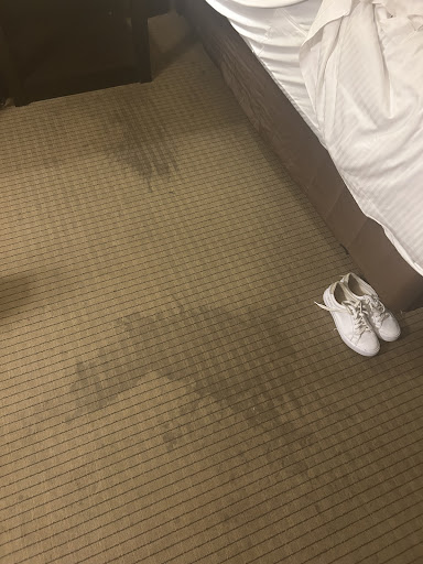Read moreWhile I appreciate the vacation rate special that was offered, it seems like your brand set this location up for failure. Rooms were not up to par! If you're going to run a big promotion - make sure every location is up to brand standard and ready for it! We were placed on the 6th floor of the hotel which was awful. I get that the smoking rooms don't get as much updating & attention as the others, but the condition of the carpet, furnishings and bathroom were unacceptable. There were so many stains on the carpet (see photos) that could have easily been taken care of had a housekeeper or rooms inspector given the care to do so. A cheap carpet shampooer from Walmart would've done the job in less than 30 minutes. The base of the toilet had grime and dried on fluids (that wiped right off with a tissue - see photo) so it clearly hadn't been thoroughly cleaned. The chair had mystery stains on it and the table in between the chairs had tape holding it together. There was already ashes & tobacco on the bathroom floor near the trash can before we even unpacked - so clearly it had been missed by the previous guests. When I went to unpack and put away clothing, the drawers of the dresser had ashes, crumbs, coins etc in them so those hadn't been cleaned either. While $140ish a night isn't a huge price to pay, it was definitely not worth what we paid for two nights. Sadly, this was once a nicer establishment in the area to visit. As for maintenance, there was one elevator down which was a bummer but that's beyond your control - things happen. I did call the front desk after many attempts (buttons on the phone do not connect you to where you need to go and pushing 0 goes no where - unless you hit the hang-up lever once) to let them know that either the window or the ac unit at the end of the hallway facing the parking lot on level 6 had been leaking and the carpet was soaked - it sloshed when it was stepped on - wish I'd known that before I set my bags down and got everything soaked. When we went to check out (7am), it wasn't even worth trying to voice our concerns as it didn't seem like the first time meant anything to anyone. Working in the hospitality industry, I get that you can't make everyone happy & reviews are all over the board. However, I feel that this is one of those times that justifiably deserves a complaint & attention...
