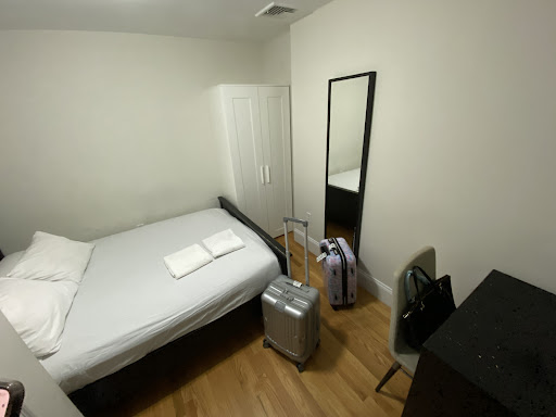 When my disabled mother and I arrived, we were astonished that although this “room” was advertised as no more than 2 flights of stairs, in fact, we schlepped luggage and my mother’s broken body (she is classified as disabled by the government) up THREE flights of stairs only to open the door to a lovely little room that was roughly 90 degrees or more. No air conditioner, no fan, not even a screen in the window to be able to safely open the window. We had no issue giving up certain comforts that others might not make the concession for (ie: shared restrooms, community kitchen, no television.) A map in our hall incorrectly labeled a lounge (since all I found near room 406 was a wall and a door that I was unable to access). People rent a room for a comfortable place to rest while on vacation. It would have been that if it wasn’t so hot. We ended up avoiding a room that I felt was overpriced. This is very obviously within the flight pattern of the airport and a fan or air conditioner would have helped drown out the sound of planes every 30 seconds and drag racers in the night. While I’m discussing noise, although there was a “quiet time,” it was NOT respected by everyone. Someone was up around 1:00 a.m. banging on something. It sounded like pots and pans, but that couldn’t be possible because the place is advertised as not having a stove top or oven, which I clearly saw in the kitchen area. If you don’t want people cooking that’s fine, but please don’t blatantly lie (as was done many times in your ad.) I wanted to show my mother a great time for her birthday, instead, she was greeted with pain from climbing numerous steps, the misery of the heat, being stunned from her sleep by rude guests being loud, apparently using the nonexistent stove, and not taking other human begins into account. Although the room was small, it was clean except for some sort of stain on the pillowcases. The armoire was placed directly in front of a plug, it would have been nice to have that extra plug. This room is conveniently located to many things. The matching code to the outside door and my room was extremely helpful, the bed was comfortable and plenty of unnecessary blankets were in the room. If I owned this building, I would invest in either window fans or air conditioning units to make your guests feel more welcome. I would try to accommodate those with disabilities by placing them on lower floors. The patch job on the ceiling of our room needs to be sanded and painted as it’s very worrying for a guest...