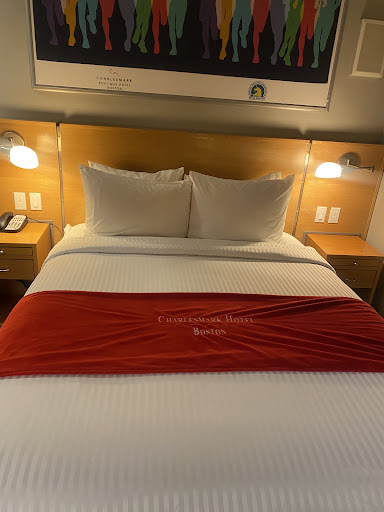 Read moreGiving the Charlesmark 5 stars, due to its excellent value in a high-value area. We stayed in a queen room with windows, that had a small folding couch (looked like it could unfold into a sleeping futon) - -it was not comfortable, even for sitting and reading, but nice to have the extra space for bags, as the closet was extremely small. The bathroom was small but nicely updated, with shower stall, toilet and sink, and soap/shampoo toiletries. The decor is not stylish, but the room was clean with daily housekeeping. The bed was comfortable and we slept well. I was concerned being so close to the elevator, but it is a small hotel with quiet guests, so even though you can hear voices and doors closing in the hallway during the day, nothing disturbed us at night. In the morning, with the room rate you received a basic coffee and a pastry (a croissant, a turnover, etc. varied each day) in the attached coffee bar. We had full breakfast at Cafe Landwer one morning (and forgot to use our room discount!) which was very good with generous portions. Best of all was the location of the hotel -- numerous restaurants within a short walk, across Boylston from the Public Library (do take a few minutes to walk through the stunning staircase and reading room!), and around the corner from the shops of Newbury Street or a lovely walk/run down Commonwealth. The Sakabayashi Sushi Tavern just a couple doors down was an excellent dinner option one evening. A T stop is within a block, and it is a short drive/ride to the airport through ride-share (15 minutes early morning light traffic). We definitely would...