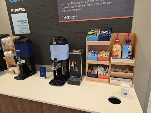 The front desk clerk was super nice and helpful at my check in. Even at 11PM, she was great. My room was stocked and straight. For the most part, clean. I dropped something by the toilet and when I bent over to pick it up, the black mold just beneath the inner toilet bowl was something the roadside cheap motels would envy. They definitely have some science growing in there and need to do just a bit deeper cleaning. A lot of the decos and non-use surfaces Had more dust on them than I would be accustomed to in a Holiday Inn. The ceiling in a couple of areas was bubbling up from what I guess is water damage. In the bathroom sink also there was some mold where the counter meets the sink. They do need to clean a bit better if you ask my opinion. The hotel was quiet and there were a lot of cars outside, so I’m sure they were busy. I heard multiple people from different tables in the breakfast room In the morning, complaining about cold showers, however, I showered at night and did not experience this. I went down to breakfast at around 7 AM and one of the coffee pots was empty and the other one was barely above room temperature and tasted like cardboard. Usually, Holiday Inn has pretty good house coffee so this was a surprise. When someone asked one of the workers if there was more coffee, she said yes, and took the empty pot brought it back and was down there at least 30 minutes. Not sure what happened to the hot coffee that none of us ever got nor her! The pancakes out of their automatic, pancake maker were absolutely horrible. While the breakfast was hot, there was zero flavor and again unusual for a Holiday Inn. I also heard some people talking about visiting here once a year and they always stay here, and they usually don’t have this type of experience. While it met the minimum expectations of a hotel, I have come to expect better from Holiday Inn and most likely will not return to this hotel next time...