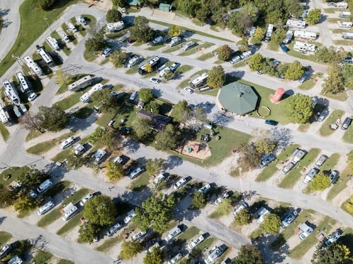 Expect some 6% grade hills on entry or exit. If coming in from Ozark mtn. Highroad watch trees.. Easiest way is to come in from the south side from Shepard of the hills/Gretna road. Coming in from target/Walmart area has stop lights on hills. Nothing a well equipped truck can't handle, but may be difficult if you don't have the right tow vehicle set-up starting off a hill from a dead stop.