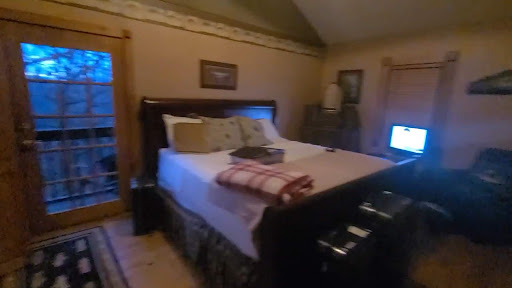 Read moreThis was a really neat cabin we stayed in the Buckhouse i was a little shocked front door is a one lane gravel road steep my mom has a bad knee walks with a cain so we drove around to the back it was a steep gravel path it made me nervous but a few times up & down we were hating walking back & forth.... I must say we really ended up enjoying this place just be careful & stay in the cabin if your disabled but the environment the trees blowing in the wind the squirrels chasing each other up the trees great escape just ask questions to double check accessibility they have a winery restaurant gift shop ... we didn't have sheets or blankets for the roll a way bed didn't ask because we were busy and my son didn't care he just took the extra blankets from the other rooms it was fine I work in the customer service industry this place is very good I would go back but a few changes could make this place next level we did have a good experience this area all the cabins ect could be a awesome place to have a wedding i hope they prosper i loved the hot tub it is down 2 flights of stairs so my mom couldn't use but my son & i enjoyed it has 2 bedrooms 2 bathrooms decor is cute cabin decor your definitely in the wilderness lots of towels 3 days plenty towels for 4 people you must make your own ice 2 ice trays dish network TV was good no internet in cabin we were good with that. Live music in the restaurant every night the cabin had a full size stove a full refrigerator a gas fireplace on a timer my mom said the 1st floor bed was hard king size the 2nd floor bed we thought was comfortable queen or full size that room has window ac and dehumidifier and they have a box fan... my mother ended up in the er(for artery blockage) we had to stay a day longer they were very...