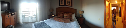 Our 1 bdrm villa was really nice, bed was really comfortable. Everything was clean aside from the mantle needed dusting. You could tell it was decently new in the lodge rooms and grounds aside from the hotel. I was impressed they were expanding. Shower was wonderful... 2 shower heads and a 3rd overhead. Toilet was in it's own little area... this is always appreciated! Extra armoire in big bathroom to accommodate for extra luggage and hang up clothes for whoever sleeps on the hide a bed. The master bedroom was spacious, very nice, stepped out onto the large shared patio. Had a large dresser in the room.
