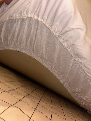 Bugs in the bed are not comforting to find. In the age of bed bugs and German roaches from hotels (as you’ve probably seen in the news recently), it’s important to check the mattress before bringing your bags in— while doing so, the bug in the picture was discovered. It ran further into the fitted sheet when disturbed. Bugs tucking themselves into the sheets is an even less comforting thing to see, and could indicate more hidden beneath the sheet. The invasive species are known to hide then come out at night.