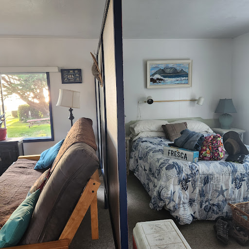 This is the best place to stay on the coast that I have found so far. It is an older family run, boutique establishment. The rooms are clean, comfortable, and decorated with loving care. Feels like a home away from home. The room I stayed in had a sitting area divided from the sleeping area by a screen wall, small kitchenette with fridg, microwave, and toaster oven, as well as the sink and stove top. The living area had a couch and recliner, flat screen TV, also a 4 seat table and chairs. Queen size bed that was great to sleep on, with nice lavender sheet set. The building sets at the front of the property, but I never heard the traffic on 101. Behind the building is a large yard/garden area the goes to the bluff over the beach. There is a stairway down to the beach, but the bluff is a great place to sit and watch the waves or sunset. It is located about 12 miles south of Brookings OR, and about 20 miles north of Crescent City, CA, both cities offer dinning, shopping, etc. I hesitate to list this place because I love it, but I don't visit that often and will just have to make a reservation in advance next time if it gets really busy. A great place for a family or a romantic...