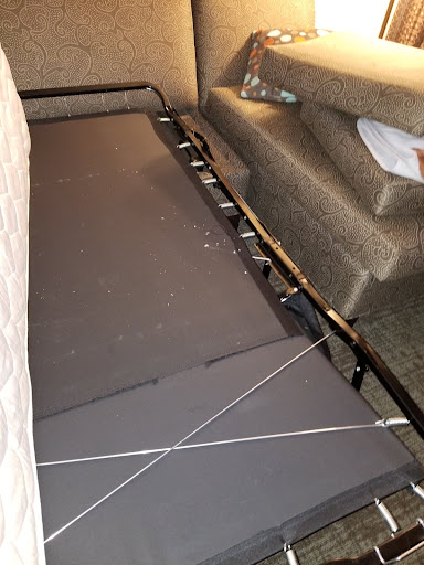 After writing this email, we then discovered that the drawers in the night stand next to the bed would not stay closed, if you closed it, it would slowly creep back open. We had to get a bungee to hold it shut, so we didn't keep running into the side of it.