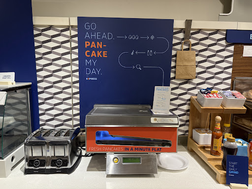 Continental breakfast had some hiccups, but overall was good. Scrambled eggs had alot of burnt brown, but everyone still enjoyed. Would have preferred bacon as an option to the sausages. Pancake maker kept breaking for everyone throughout breakfast, but the young man breakfast attendant kept fixing it.