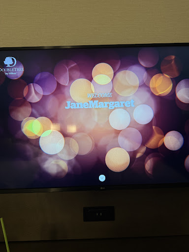 In my disorientated state, I thought little of unaliving half a dozen fruit flies that were on the ceiling and wall above one of the beds (and one floating in the CLOSED toilet bowl) and the undeniable stench of mildew emanating from the bathroom. I passed out shortly after entering room 155. Later that day, I woke up and noticed the TV welcomed JeanMargaret (not me) and to find the fruit fly reserves had apparently been buzzed in to avenge the fallen, because over the course of the next 20 hours or so, I was embroiled in battle, resulting in DOZENS of fruit fly casualties. I honestly thought I was imagining things, until I discovered the source of the infestation â a decent sized red stain on the carpet next to the a/c unit, appeared to be a juice or similar spill that had to have been left by previous occupants. This, as well as other factors (dust, cup rings, etc) suggested that this room was not cleaned prior to my arrival.