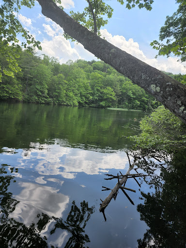It had a perfect little lake with a small beach. The lake was beautiful and the water was freezing. The nearby creeks feed the mountain water stright into the lake so no matter the time of year its always cold. My husband went for a swim and many children seemed to enjoy it. I saw multiple salamanders or tadpoles/frogs swimming around. There was also plenty of fish jumping and I would love to fish once its allowed again. Currently in May 2022, only youth fishing is allowed but adults will be able to fish in the middle of June. It is a trout stocked lake. There are also plenty of picnic tables near the lake area to have lunch or use the stationary charcoal grills. There is also a large covered area that can be rented for events, we saw a wedding while we were there.