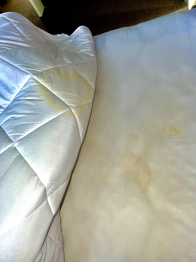 Read moreThis place has so much potential to be great. We rented the corner executive suite on the 8th floor. The view was spectacular. However the room was so disgusting that we were afraid to touch anything. For almost $350 a night, clean bedding should be a given. Every surface had food on it like they just gave us the room without cleaning it from the last guest. There was hair everywhere in that room that was clear as day not mine. The jetted tub full of hair at the drain, the shower same thing and weird dirt spots on the floor of it. Now let’s get to the bedding. I pulled the blankets down and there was crumbs of food in the bed as well as more hair. I called down for new bedding. The men at the front desk were very polite, however the woman who delivered the new bedding had an attitude after I asked for a new mattress protector and then had to send her back down again because she forgot the new blanket. I am sure she was annoyed having to keep going back and forth but we really can’t be faulted for wanting clean bedding. Also, it wasn’t like I was making her change the bedding for us, I did that on my own I just needed the supplies. The photos will speak for themselves. There was another mattress cover that had stains on it as well but that one couldn’t be removed. We had a terrible nights sleep because not only were we afraid to get in the new bedding that was covering the yellow stains underneath us on the unremovable mattress cover, but the bed was rock hard. They also make it to where if you want to park somewhere safe off the side of the road you HAVE to pay for valet parking. $25 a night. There is a parking lot right next to the hotel that is only allowed to be used if you are paying for valet. We booked here because we stayed in the other chain in Manhattan in NYC and we LOVED it. This one was such a let down and I immediately wanted to go home as soon as I stepped foot in that dirty room, but I wasn’t walking out on $350 dollars. Though we had a terrible time in our room, most of the staff were great, the breakfast amazing, the view amazing, the little shop for snacks was amazing, but this place has put us off from staying in...