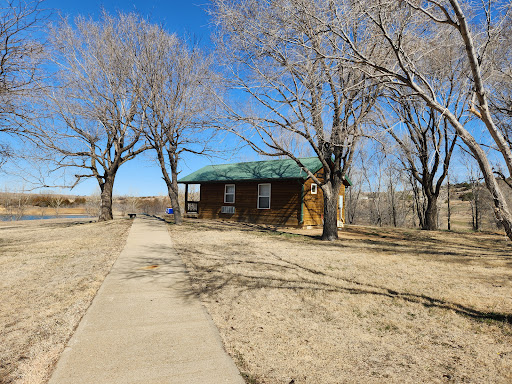 Read moreGreat stay at Elm Bluff cabin! I wasn't sure which to choose online, but really glad we ended up where we did! The Elm Bluff cabin is the last cabin of the Elm cabin lineup. The other 3 Cabins face out to the road, while Elm Bluff is turned 90° and faces a cove of the lake. The firepit area is more private with lots of room to run around. There is a charcoal grill and a big fire pit, along with a picnic table. The front porch can easily hold 2 lawn chairs. All the Elm Cabins have a fire pit and grill. Parking is right out front. There is a playground and additional restrooms/showers across the street. The Elm Bluff cabin was roomy and clean. It had all the amenities you'd need for a stay. The futons are a little old, so if you plan to sleep on them I'd recommend bringing a foam mattress pad. The bedroom was a good size and has a little hanging storage. A pack and play could easily fit in the bedroom. The bathroom is large and comfortable. The heat/AC worked well. We will definitely stay here again and recommend...