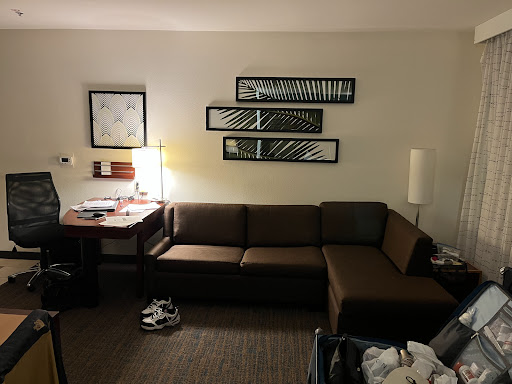 Read moreI've been a rewards member since 2006 and anymore these days, I'm consistently underwhelmed. I must say that all staff I encountered were great. No complaints there. Location is pretty great if you're looking for drama-free access to the 5 and there's lots of shopping and restaurant option within safe walking distance. There's mobile check in at this location but no mobile key which was a bummer. Parking is $15/night. Could be worse, I guess. The hall carpets are out dated and basically looked dirty to me because the wear and tear allows for all sorts of stuff to get stuck to the freyed surface. My room was clean and had everything thing I needed. Shower only in the studios, no bathtub. The bed was hard and uncomfortable compared to the Marriott's I've stayed at over the past year. The bathroom sink drained so slowly that by the time I was done brushing my teeth, the sink was about 3/4 full of water (and now toothpaste and my spit) and it took a while for it to completely drain. You can't tell me that the last housekeeper didn't notice this. I went down for breakfast about 830am. Typical stuff like waffles, cereal , bagels, fruit, oatmeal, etc. I tried the eggs, sausage, and a biscuit with gravy. I couldn't eat it. It all was so processed and cheap that it tasted like cardboard. I was also unimpressed by the dirty counter tops and floors where people had spilled and no one had gotten to the clean up yet, nor did they by the time I had dished up and left the area. I used the guest laundry as well. Despite the small load that I had, the dryer didn't completely dry my clothes so you'll need to run it twice and I'm not sure when the last time was, that the laundry room was really cleaned. Outlets and wall trip had dust and caked on lint that made it feel like I was in some back alley self service. Overall, it was not an unpleasant experience, but I thought this was Marriott who provides facilities and service that's above the rest which is how you justify paying over $200/night. But that just wasn't my experience. Might as well have stayed...